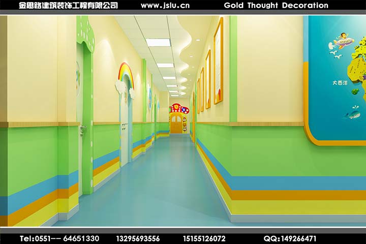合肥幼兒園裝修設計除了是考慮到幼兒園結(jié)構(gòu)問題外,環(huán)境與特色問題也是非常重要的,環(huán)境方面要適合幼兒在身體與智力不斷提高時的適用性,特色方...